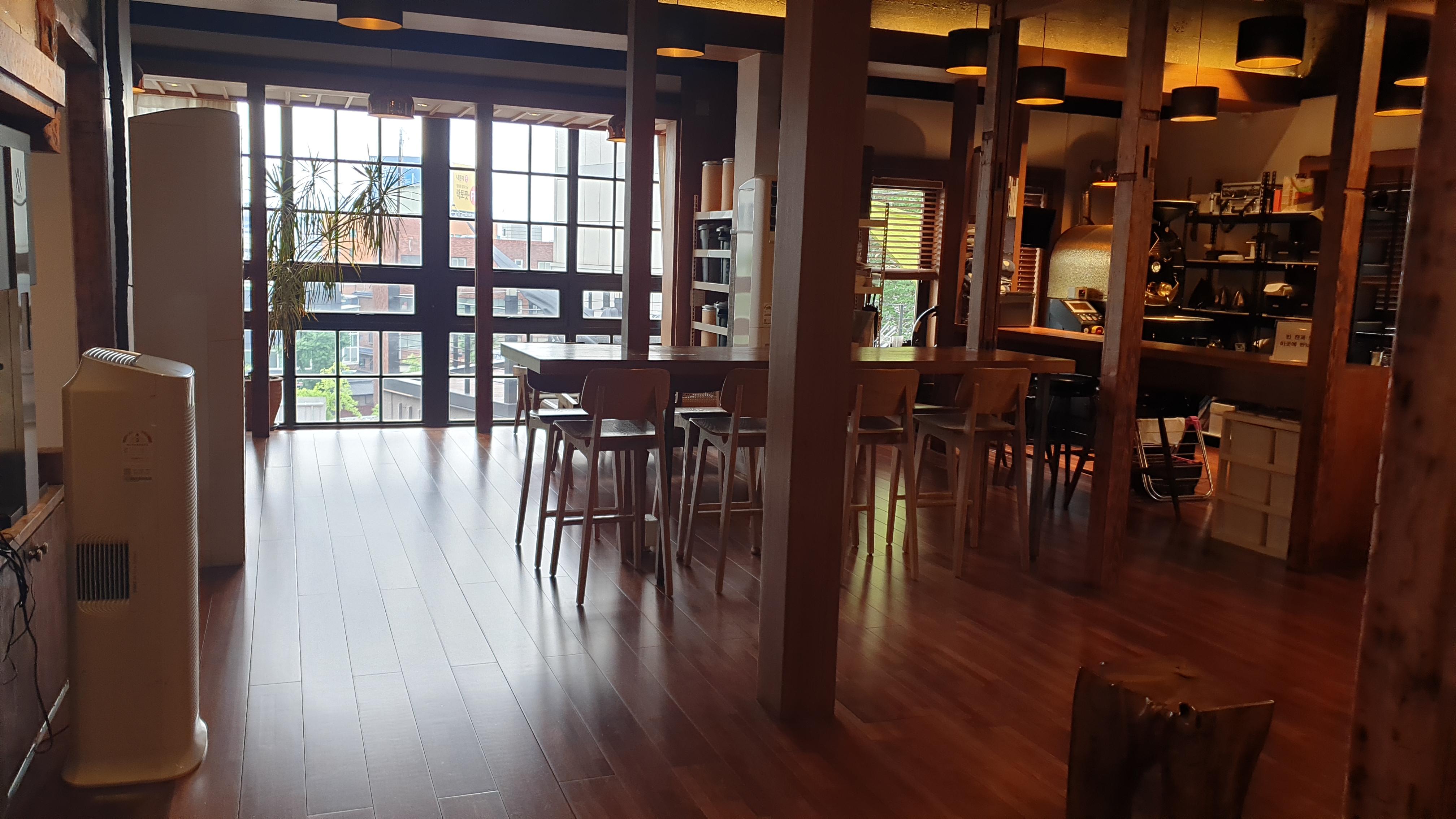 1층에 카운터가 있구요. 한쪽에는 직접 커피를 로스팅 하나봐요.