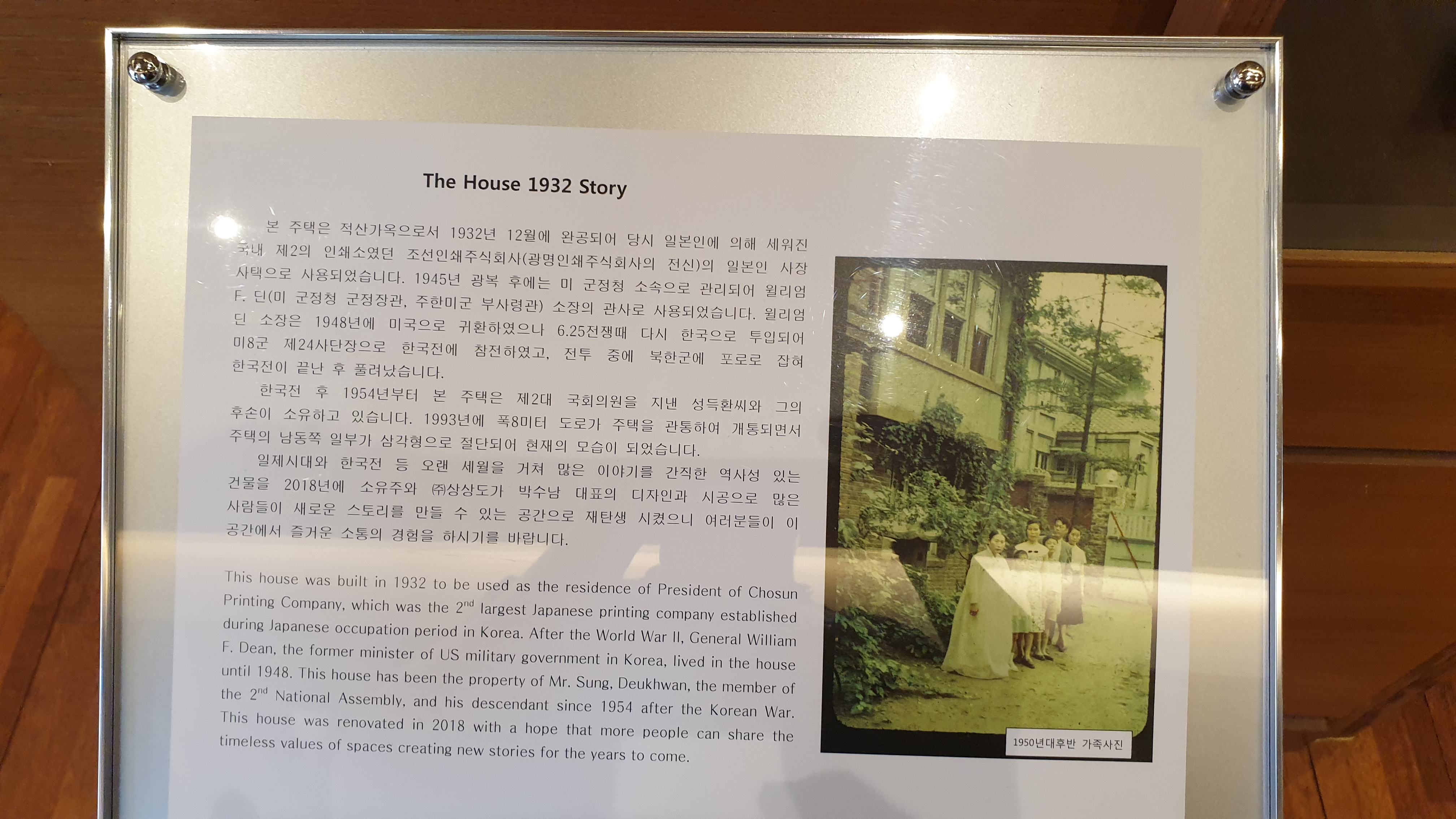 소장의 관사로 사용되었습니다. 윌리엄F.딘은 1948년에 미국으로 귀환하였으나