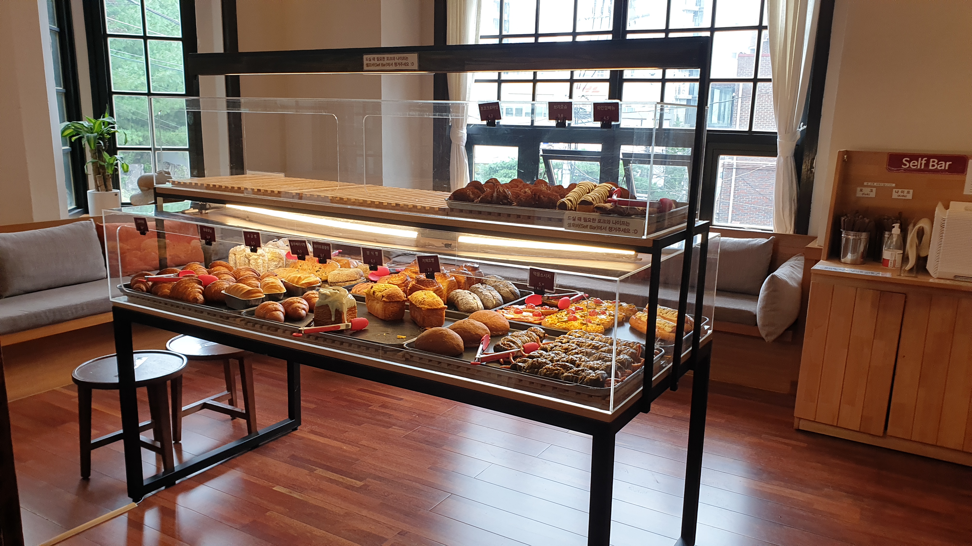 들어가자마자 바로 왼편에 이렇게 빵 진열대가 있거든요.