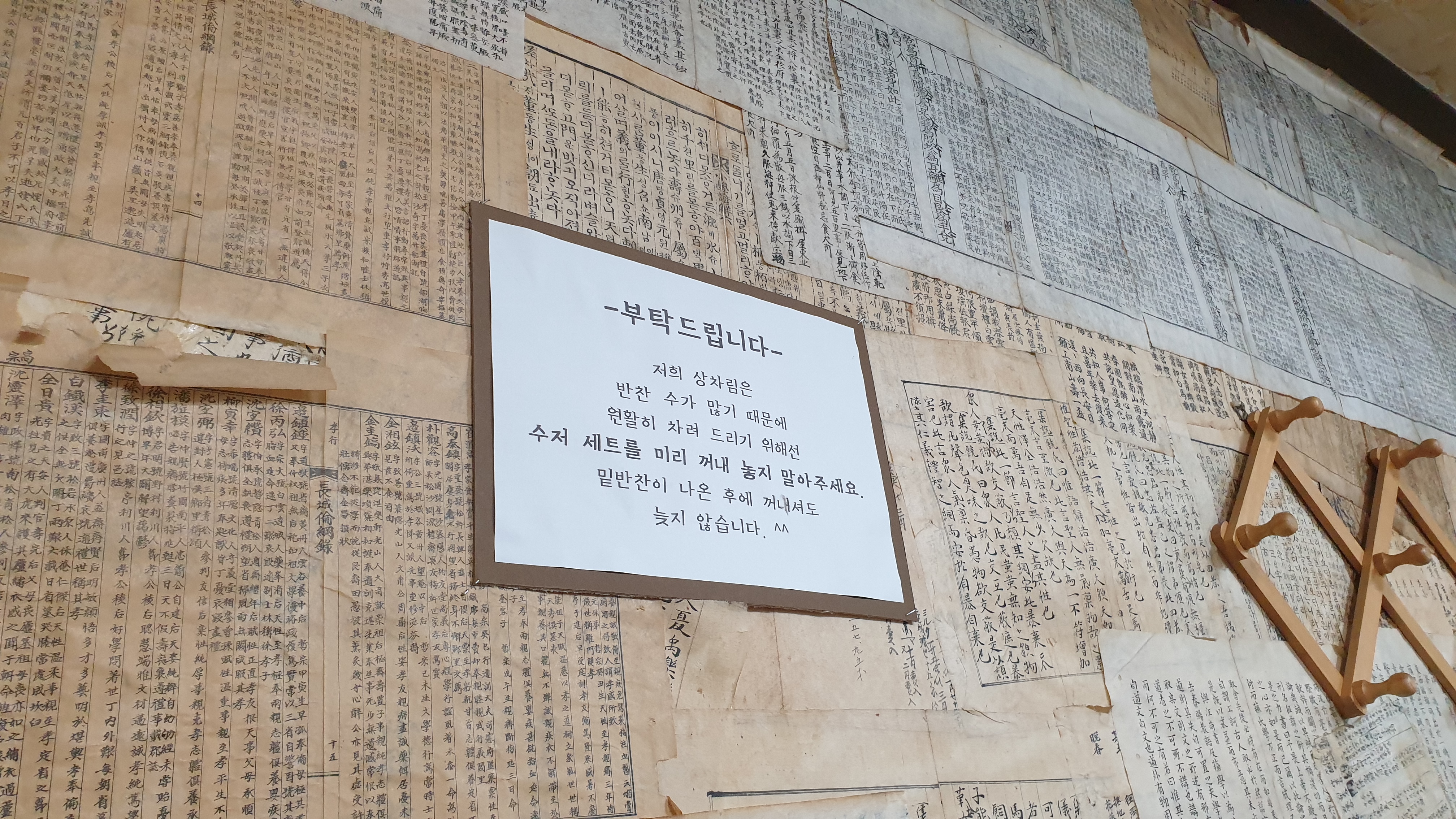 종이를 붙여서 벽 인테리어를 장식해 놓으니