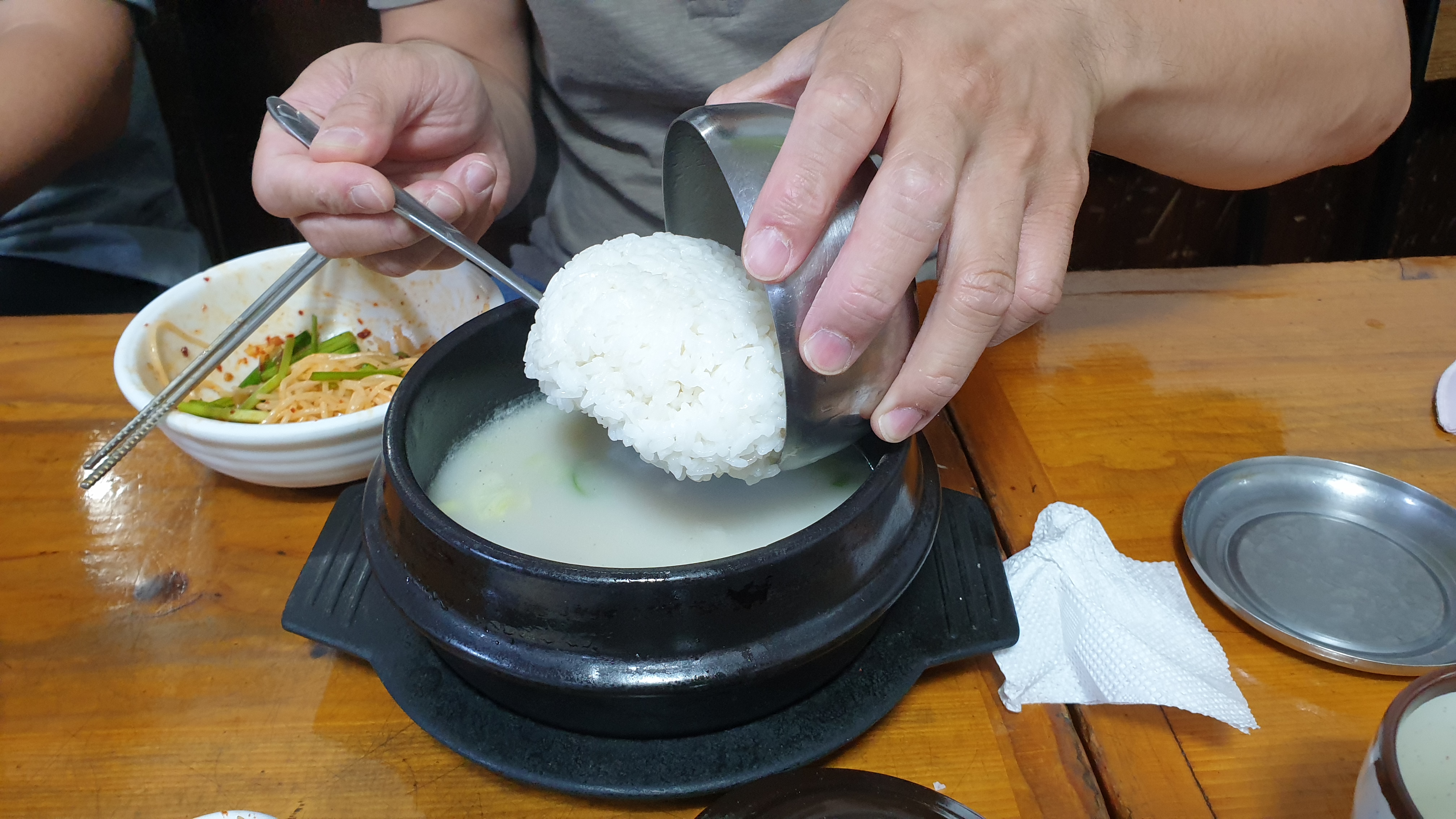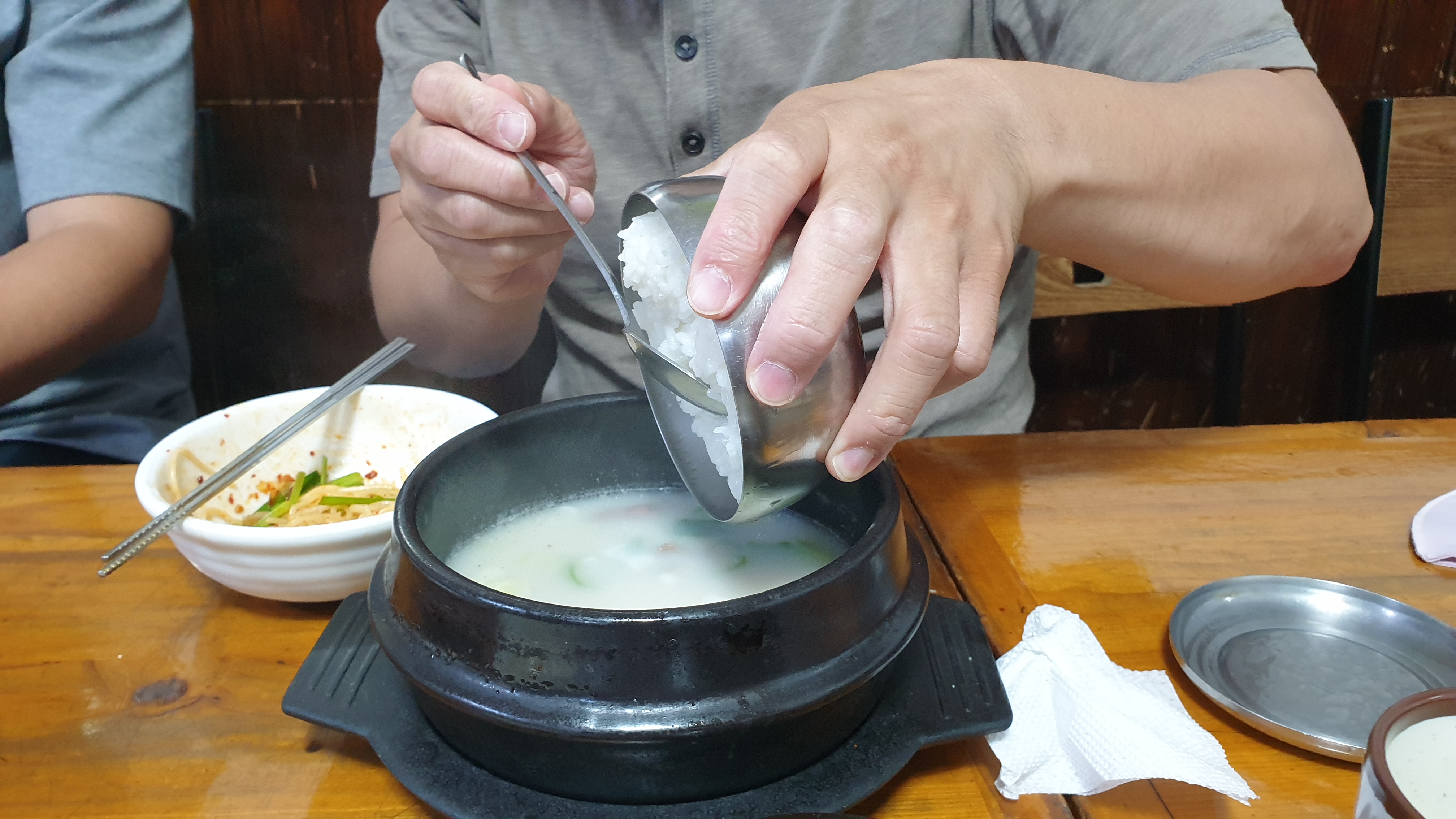 국물이 식기전에 뜨거운 밥을 말아서 온도를 유지해야 하므로
