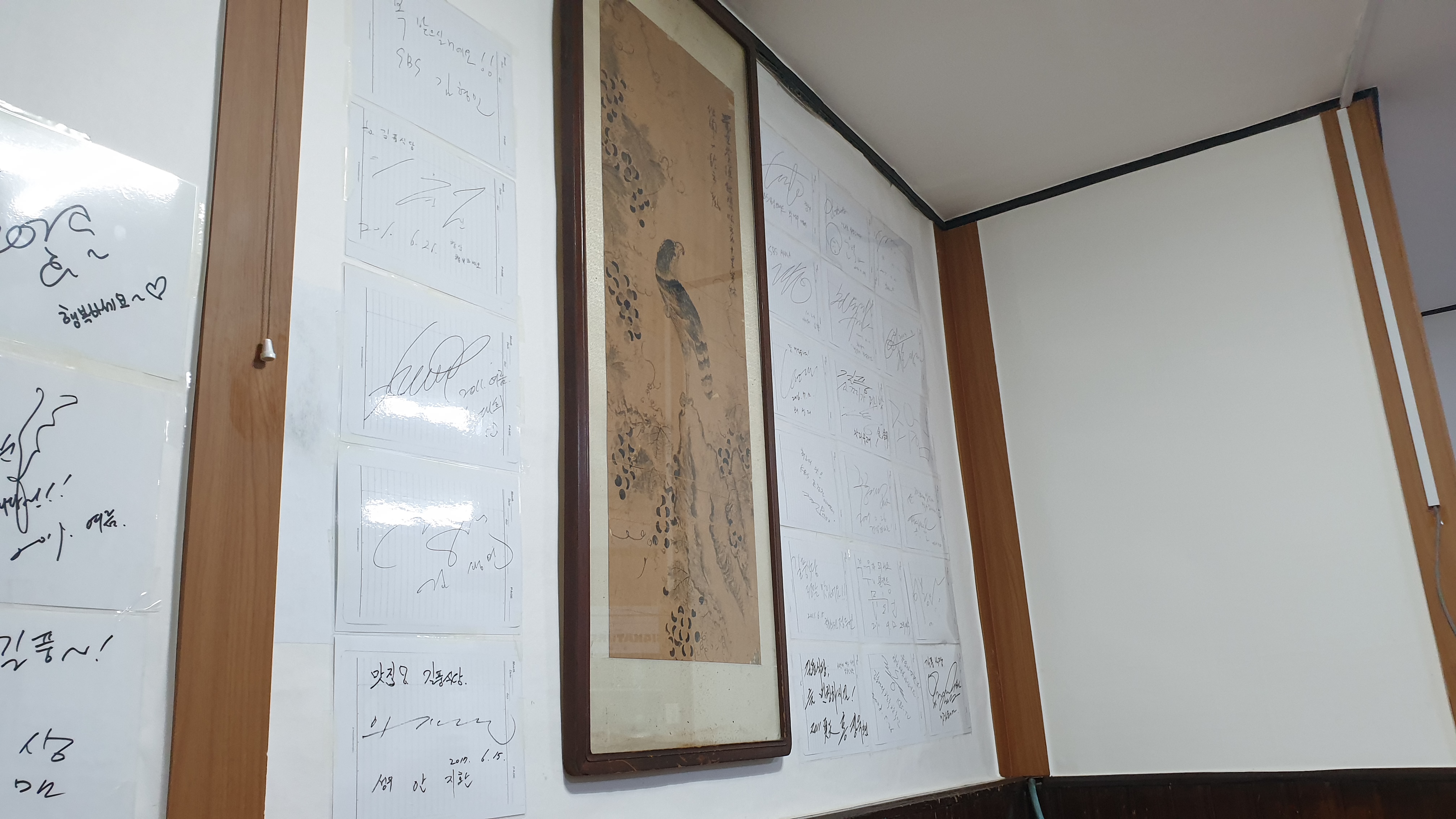 한쪽 벽이 다 셀럽들의 싸인으로 도배가 될 정도로